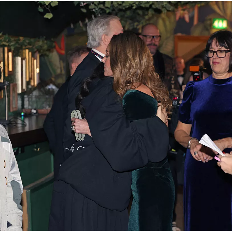 キャサリン皇太子妃は、乳がんと闘っている歌手ジェシー・Jを、ロイヤル・バラエティ・パフォーマンス終了後に抱きしめた。(ロンドン、2025年11月19日)