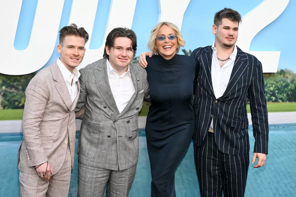 ロサンゼルスで行われた最新作『Mr.ノーバディ2』の先行上映会のレッドカーペットで、シャロン・ストーンが注目を集めた。67歳のハリウッドのアイコンである彼女は、その優雅さだけでなく、元夫フィル・ブロンシュテインと養子縁組した25歳の長男ローアン、20歳の次男レアード、19歳の三男クインという3人の息子に囲まれた珍しい家族そろっての登場でも、カメラマンたちを魅了した。3人の息子たちはこの特別な夜に母を応援するために集まり、非常に洗練された装いでレッドカーペットを歩いた。ローアンはピンクのスーツ、レアードはグレーのチェック柄スーツ、クインは細いストライプの入ったネイビーブルーのツーピーススーツを選んでいた。