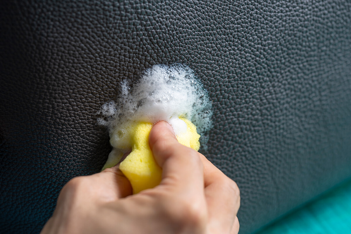 汚れている部分に直接スポンジを当て、円を描くように優しくこする。強くこすると革を傷つけてしまうので注意。