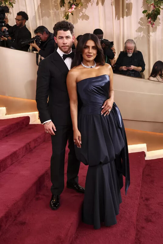 ゴールデングローブ賞のレッドカーペットに登場したニック・ジョナスとプリヤンカー・チョープラー。(ビバリーヒルズ、2026年1月11日)photography: Tommaso Boddi/2026GG / Penske Media via Getty Images