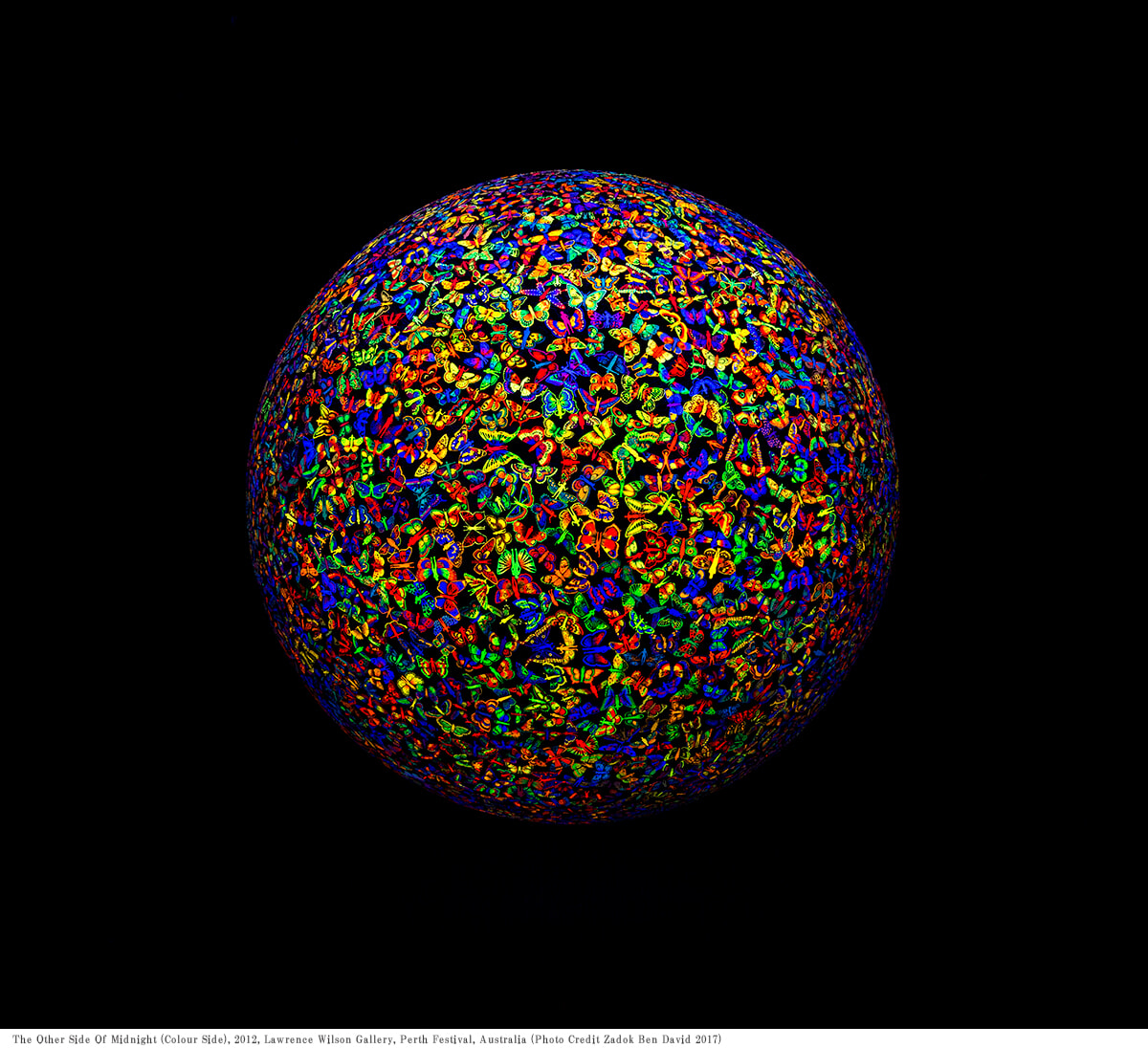 ロンドンとポルトガルを拠点に活動するザドック・ベン=デイヴィッドは主にアルミなど金属を用いて、繊細なミニチュアと大型インスタレーションの両輪に取り組む。美しい蝶の群れが黒い甲虫類に、漆黒の影が色鮮やかな花園に一転する彼の代表作は、詩的で幻惑的な錯視効果を生み出し、美と嫌悪、絶望と希望といった表裏一体の世界の本質を示す。本展では過去作品が初めて一堂に会し、多様性に満ちた自然界の構造を通して、世界の成り立ちや人類の位置づけを問いかける。