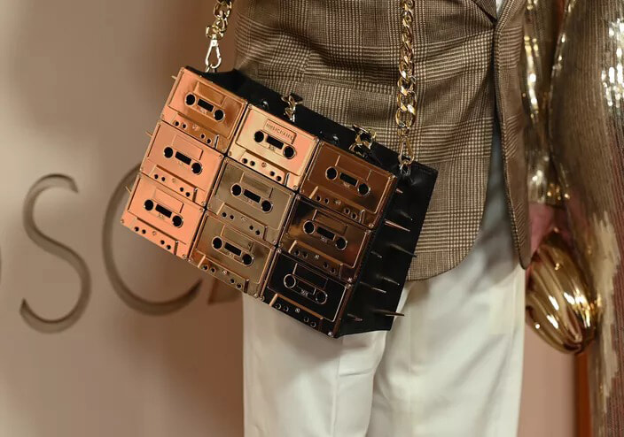 第98回アカデミー賞のレッドカーペットに登場した、スパイク・リーのカセットテープ型バッグ。(ロサンゼルス、2026年3月15日)photography: John Shearer/98th Oscars / Getty Images The Academy via Get