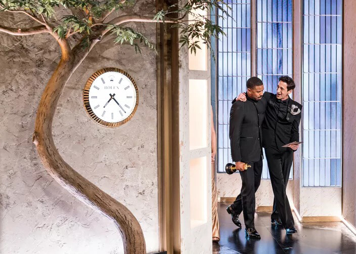 バトンタッチの瞬間。2025年に主演男優賞を受賞したエイドリアン・ブロディが、今年の受賞者マイケル・B・ジョーダンを祝福。(ロサンゼルス、2026年3月15日) photography: John Shearer/98th Oscars / Getty Images The Academy via Get
