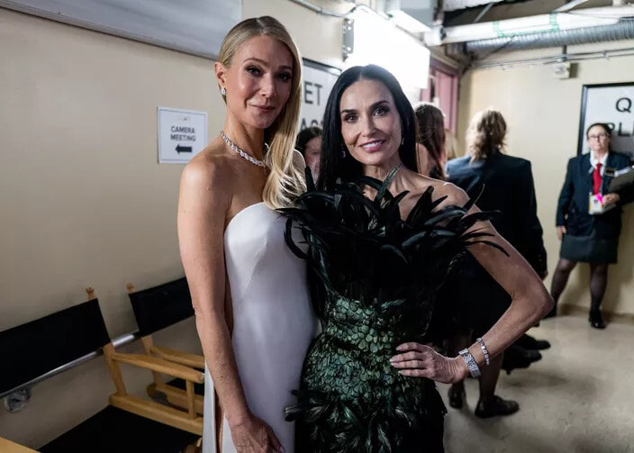 第98回アカデミー賞の舞台裏で、グウィネス・パルトロウとデミ・ムーアのフォトタイム。(ロサンゼルス、2026年3月15日) photography: John Shearer/98th Oscars / Getty Images The Academy via Get