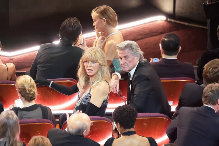 いったい何がゴールディ・ホーンとカート・ラッセルの注意を引きつけているのだろう?(ロサンゼルス、2026年3月15日)photography: John Shearer/98th Oscars / Getty Images The Academy via Get