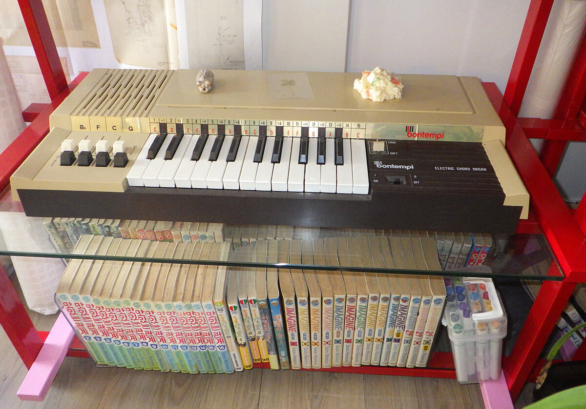 実際に作曲する時に使っているというBontempiのミニオルガン。