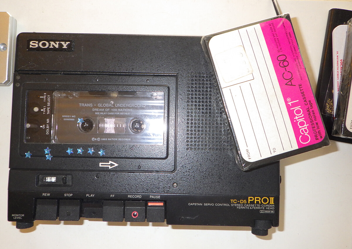 アナログなテープレコーダーも彼女の制作過程の必需品。