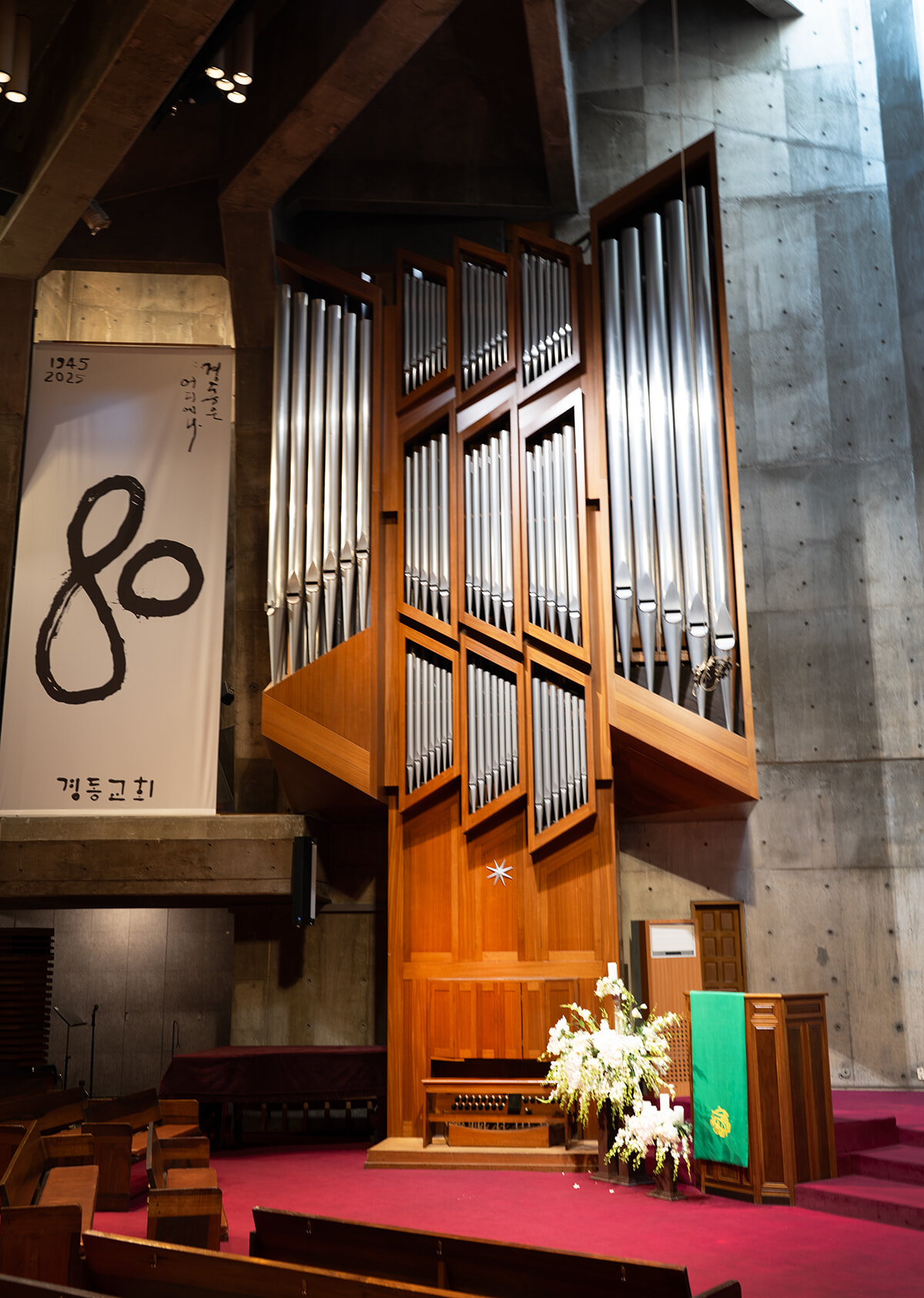 パイプオルガンを前に聖歌隊として讃美歌を歌うと心が洗われる。