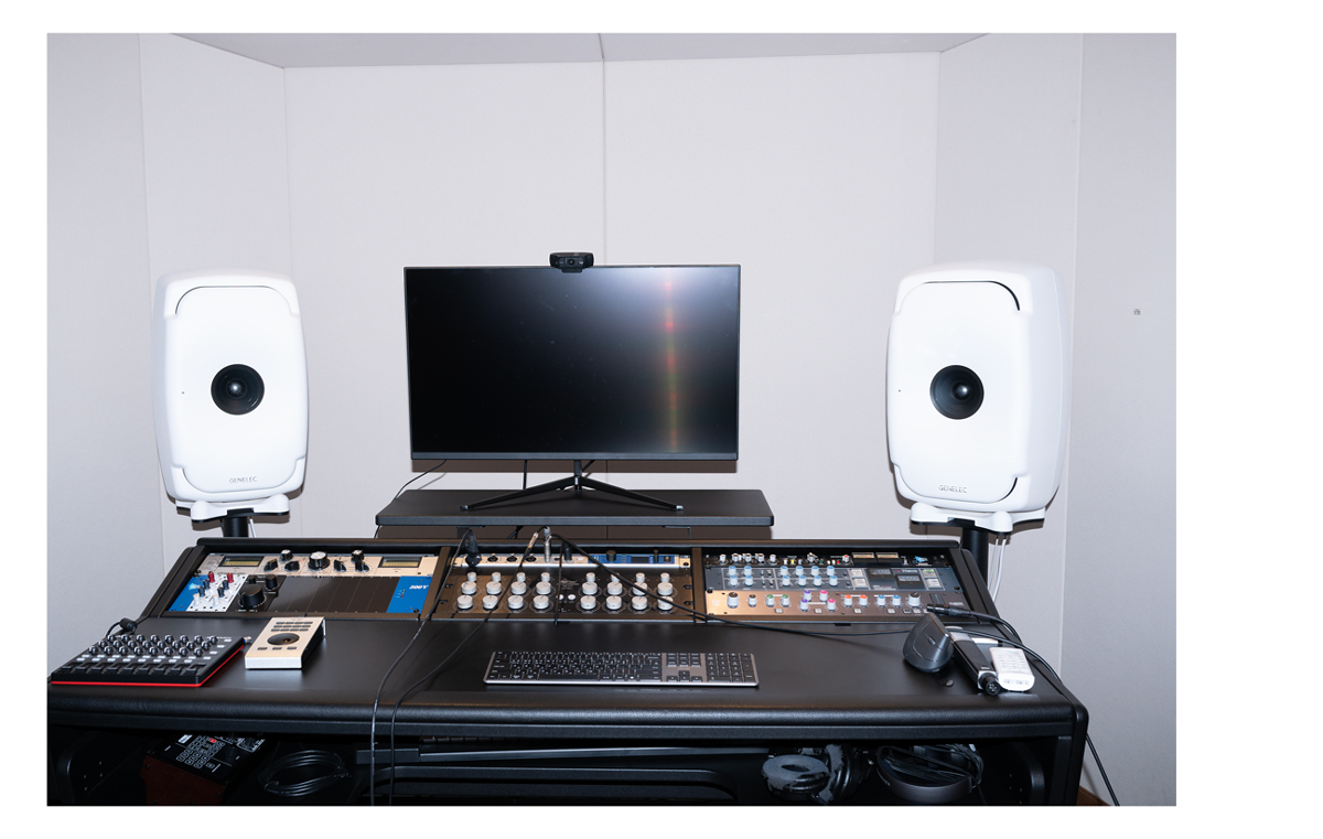 スンジョンのスタジオ。フォルムがお気に入りの白いスピーカー。