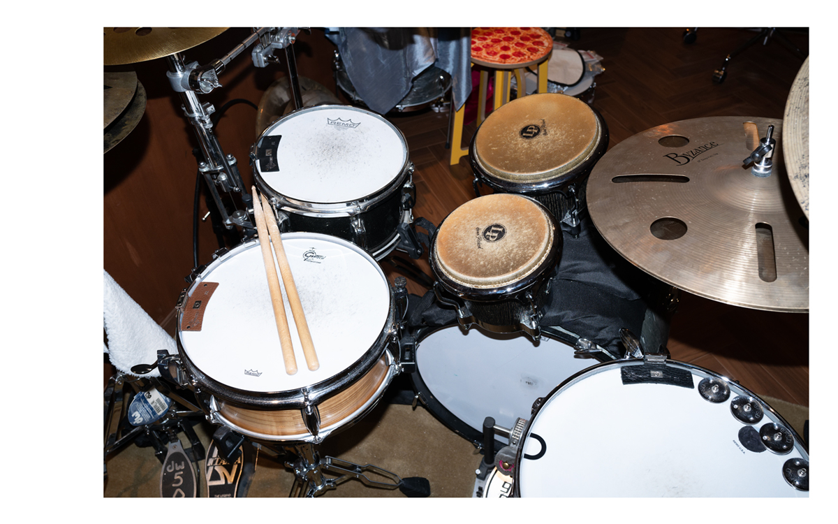 ドンギュのドラムセット。整備キット「これにしか出せない音がある」ととともに、彼の音楽の必需品。