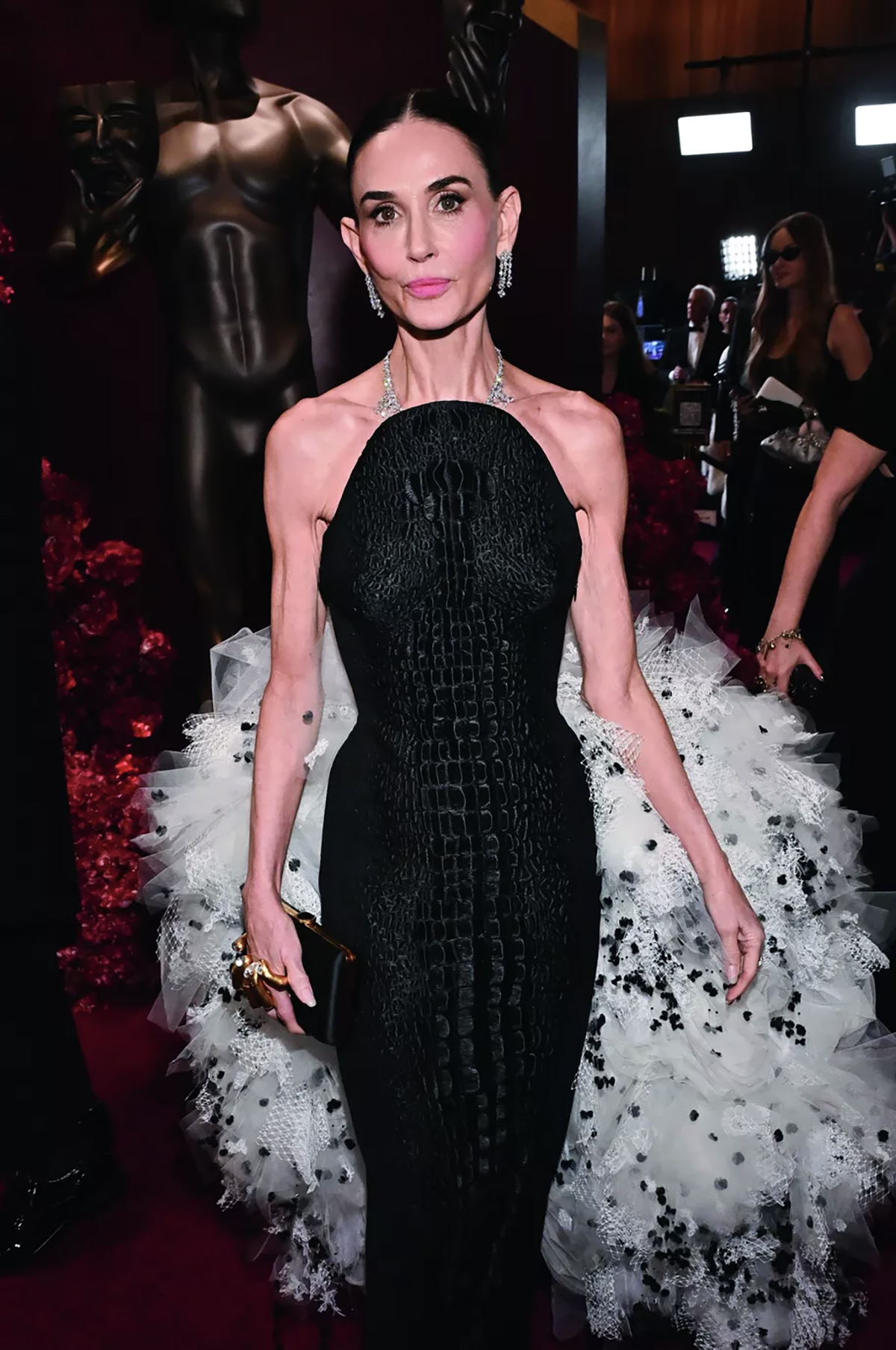 もうひとつの選択肢は、63歳のデミ・ムーアのように逆に振り切り、全身を作り替えてしまうという道だ。最近のSAGアワード授賞式にやせ細った体で登場して以来、ネット上で激しい論争を巻き起こしている。若さへの執着をテーマにした映画『ザ・サブスタンス』で過激な役を引き受け、現代に対する文化的考察をすることでアカデミー賞獲得を狙うという戦略だ。結局は逃してしまったが。女優たちは若い頃から矛盾する要求に疲弊している。老いてもいいけれど、わからないように老いること。これは女優たちにとって残酷な綱渡りだ。そして今では男優も同様の状況にあり、62歳のブラッド・ピットも元気な50代のように見えることが求められている。それでもちょっとは前進したのかもしれない。58歳のパメラ・アンダーソンが「ナチュラル」を公言し、少なくともメイクアップを断念したのだから。