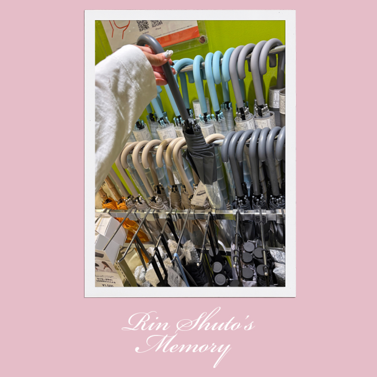 300円ショップで撮って、スタッフのグループラインに送った写真がフォルダに残っていました。作中、キーアイテムになる傘について、みんなでああでもないこうでもないと相談したことを思い出します。最終的にどんな傘が選ばれたのか、ぜひご覧いただけたら嬉しいです。折れ具合にもこだわった一本です。