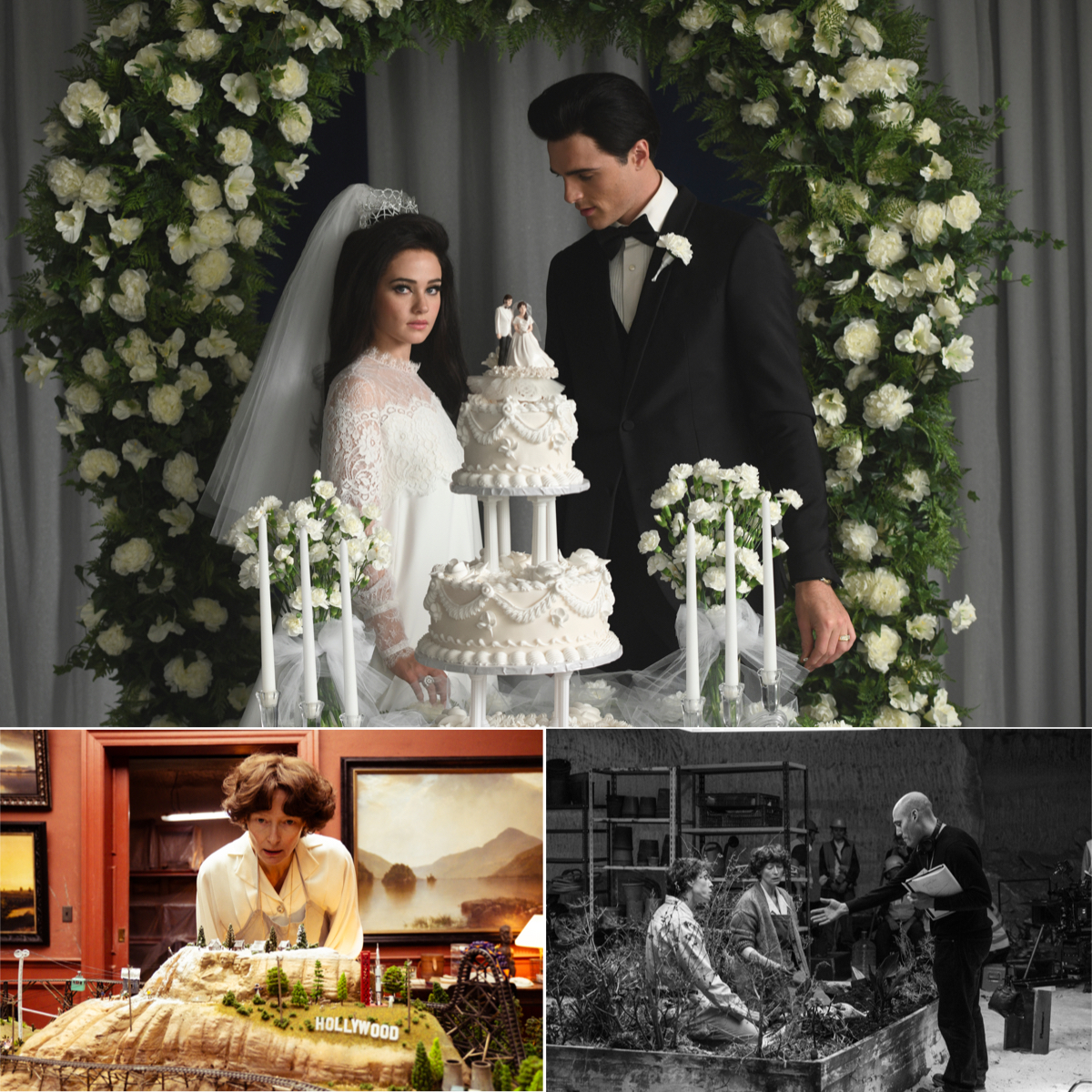 衣装提供にとどまらない映画界への支援。上:シャネルのアンバサダーであり、映画監督・プロデューサーのソフィア・コッポラの映画『プリシラ』では、シャネルが特別に製作したウェディングドレスをプリシラ・プレスリー役のケイリー・スピーニーが着用。(2023年)© philippe-le-sourd 下:ティルダ・スウィントンが出演するオッペンハイマー監督の『THE End』(原題)では、シャネルが製作と衣装をサポート。(2024年)© neon