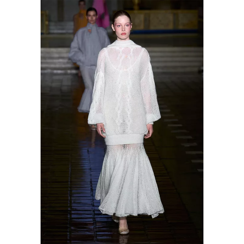 同じくニューヨークで、ヴィヴィアン・ウィルソンはプラバル・グルンのショーに真っ白なレースのドレスでランウェイに登場。さらにクリスハバナのショーでは、ベージュのスタッズ付きベルトがあしらわれたメタリックなドレスでランウェイを彩った。