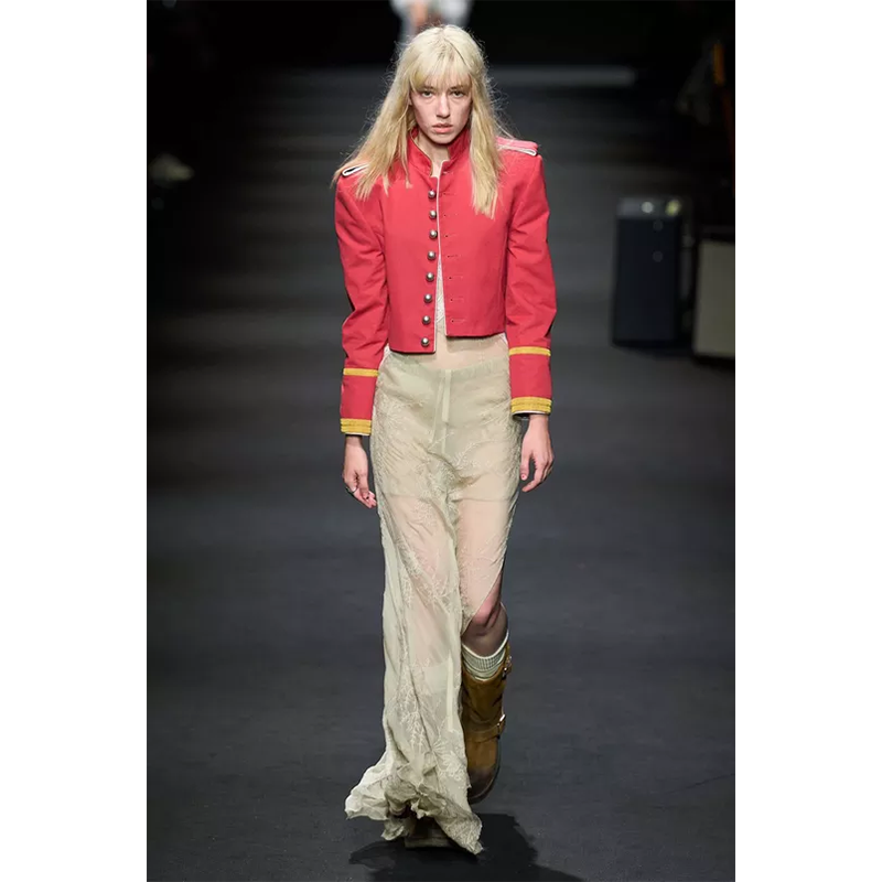 2026年春夏シーズンでは、ミリタリースタイルが復活を遂げている。昨年10月にジョナサン・アンダーソンが初めて発表したウィメンズコレクションでアメリカ人女優ジェナ・オルテガが着用したディオール オムに加え、アレキサンダー・マックイーン、アン ドゥムルメステール、ジョハンナ・オーティズ、バーバリーといった大手ファッションブランドもミリタリースタイルを復活させている。ナポレオンジャケットはいまも進化中だ。