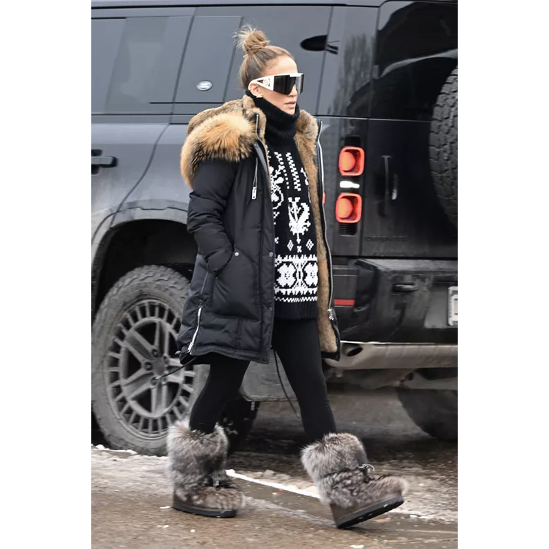 ゲレンデの麓で息子を迎えに行くジェニファー・ロペス。(アスペン、2024年12月27日)