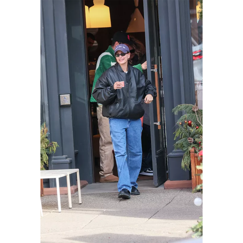 アスペンのカフェ「サンタンブロース」を出るヘイリー・ビーバー。(アスペン、2023年12月19日)