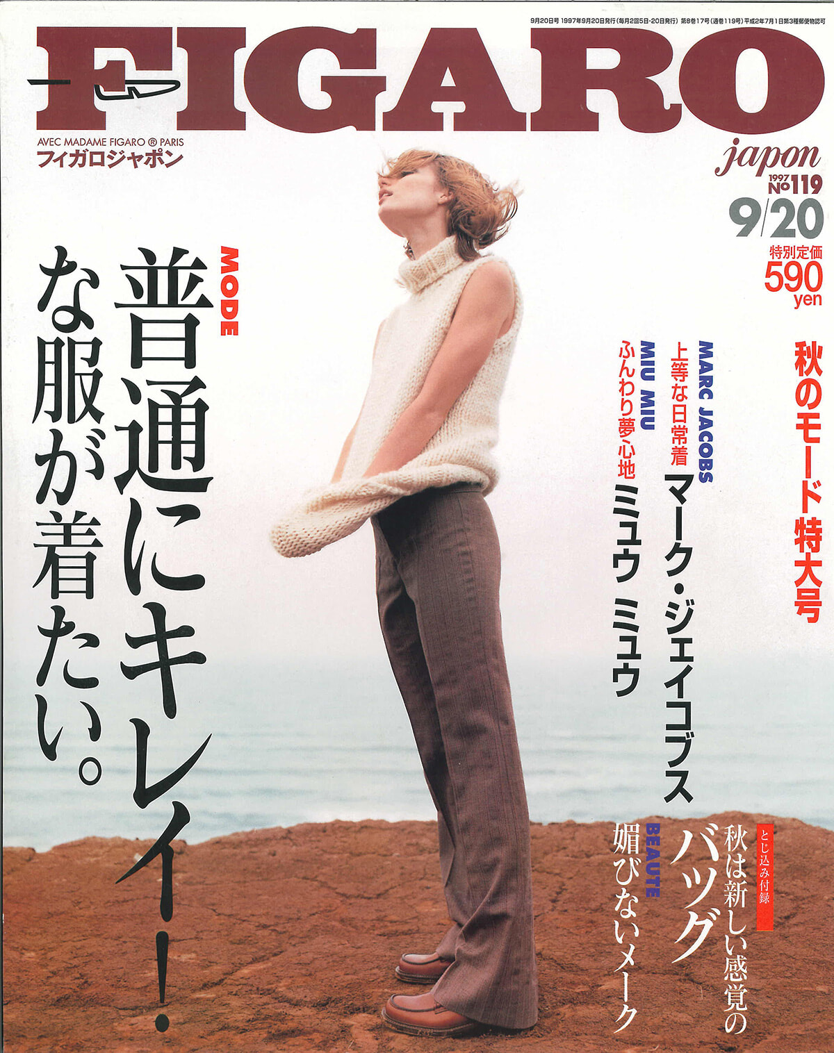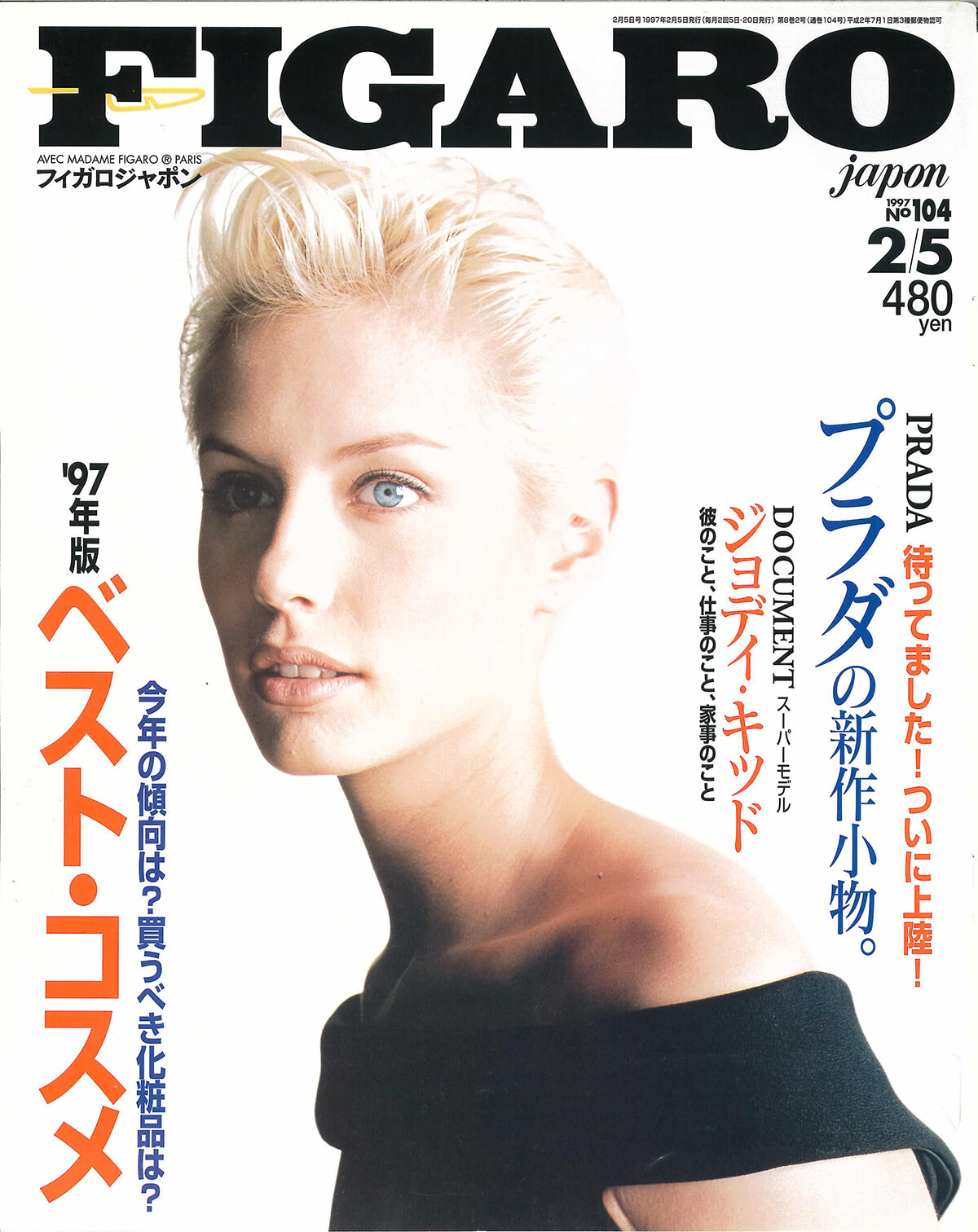ちょっと前から出始めたスーパーモデルは神々しく、近寄りがたく、セクシーで、大人の女性が多かった。でも、ジョディ・キットの登場で世界は変った。愛嬌いっぱいの丸顔、彼氏との生活をさらりと見せてくれる自然体で、エスニックモードが好きなジョディ。人々は夢中になった。巻頭特集はベスト・コスメ。やっぱりフォースC、というのがすごい。テーマのひとつにヒーリングコスメを置いていて、オーガニックや自然派への敬意があふれている。猫の中特集もある。フィガロジャポンは当時、猫派が多かった。