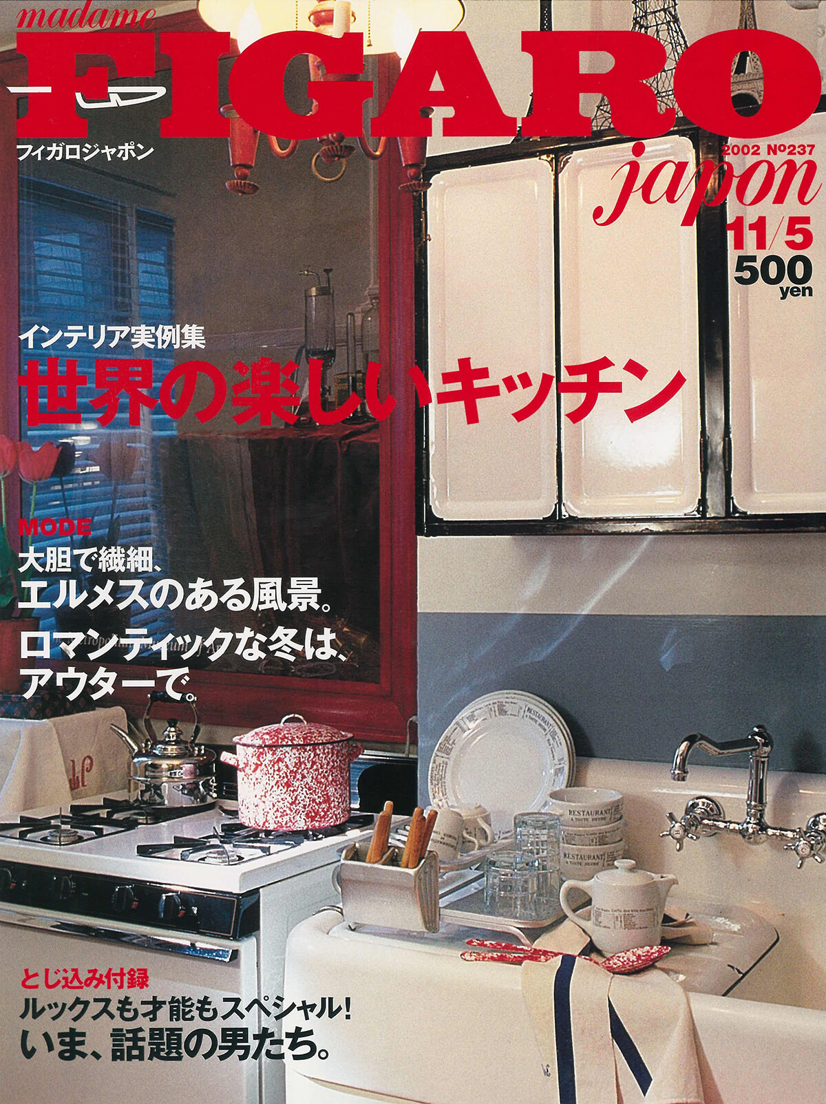 巻頭のキッチンのインテリア実例特集のリードに上記の言葉があった。そのとおりだと思う。フィガロジャポンはずっとグルメを大切にしてきたし、食べるところが楽しくあるべきで、おいしいものを作ることや料理人の考え方などに重きを置いてきた。キッチンが使いやすくて素敵だとごはんがおいしくなる。ファッション撮影の際にも、筆者の師匠の塚本香氏は手作りのおにぎりなどを持っていくこともあった、スタッフのために。そういうフィガロジャポンのアティチュードが現われた特集でもある。