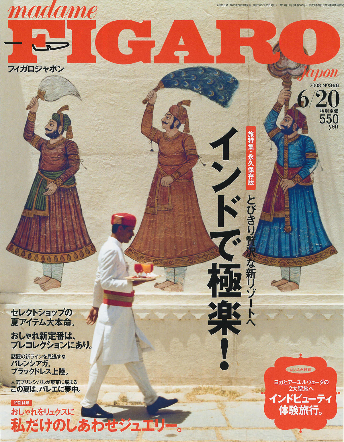「インドって、旅するきっかけは偶然に呼ばれるものなんだよね」。と友人から言われたことがある。そうかもしれない、筆者はインドに呼ばれない……。でも、この原稿を書くために今号のページをめくっているいま、呼ばれた気がした。実は2008年当時、筆者は同社内で別の男性誌に異動していた。だから、この号をじっくり作りながら見ることはなかった。ページをめくるたびに登場する、鮮やかな色彩と精緻な細工。同時期に発表された、カルティエのインド着想のラインや、エルメスのモンスーンの庭の香り。ああ、本当に訪れてみたい、と心から思った。おそらくあと3年以内くらいに、この地に行くことになるのだろうな。