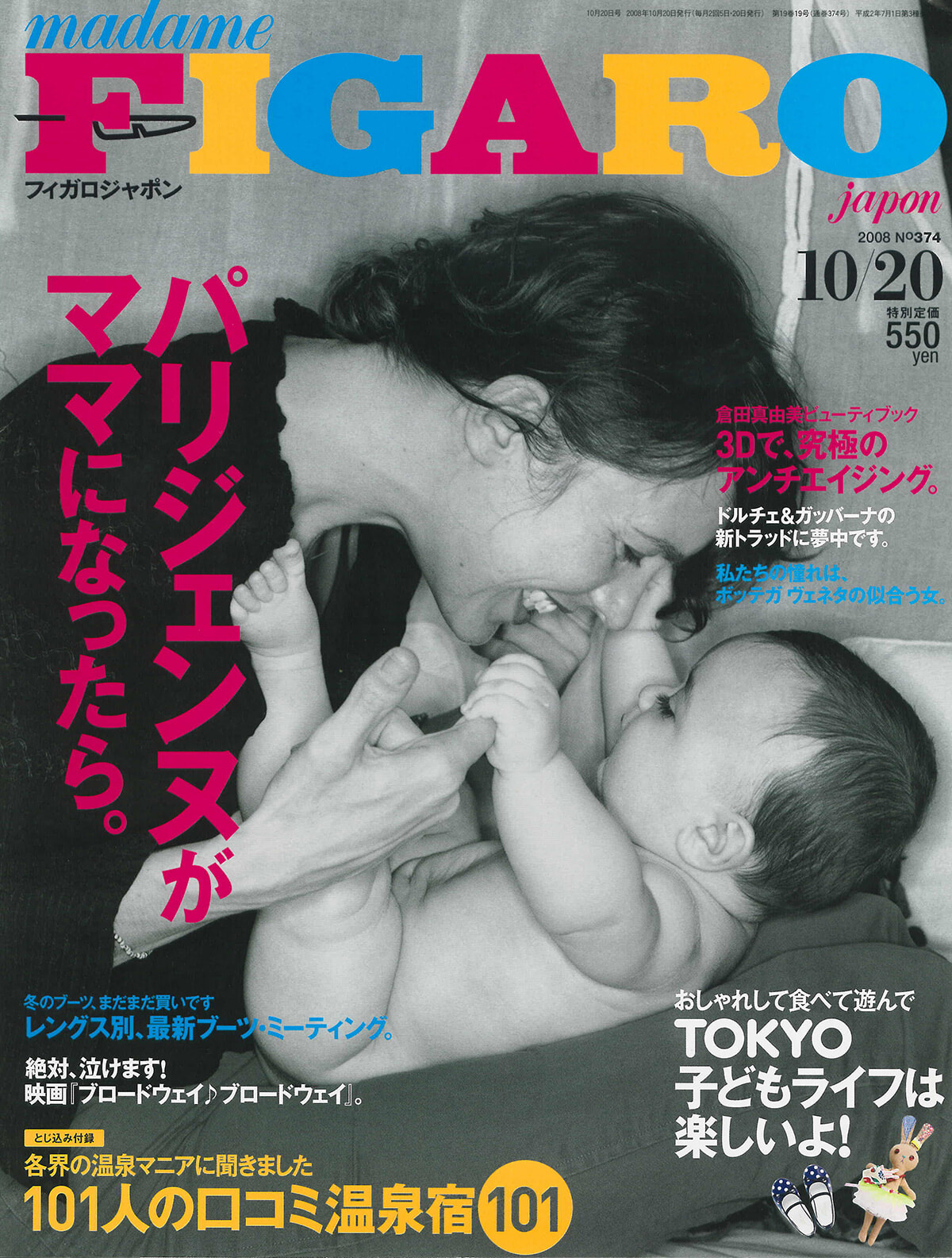 以前も書いたが、この頃からフィガロジャポン編集部にも働くママが増えてきた?のかな。もしくはやはり子育てが世の中の大きな関心事になり、日本だけでなくパリではどんなふうにおしゃれにお育てしているの?ということを知りたい人も。実際、ヨーロッパのお宅拝見テーマをやると必ず子供部屋も紹介していて、色やデザインの素晴らしさは、子どもの脳や心にいい刺激を与えるのではないかしら、と写真をセレクトしながら考えたものだ。パリには子ども用のユニークなアドレスが急増している時期でもあった。綴じ込み付録では、101人の口コミで紹介する日本の温泉宿。この特集は、筆者もさんざん活用させてもらいました!
