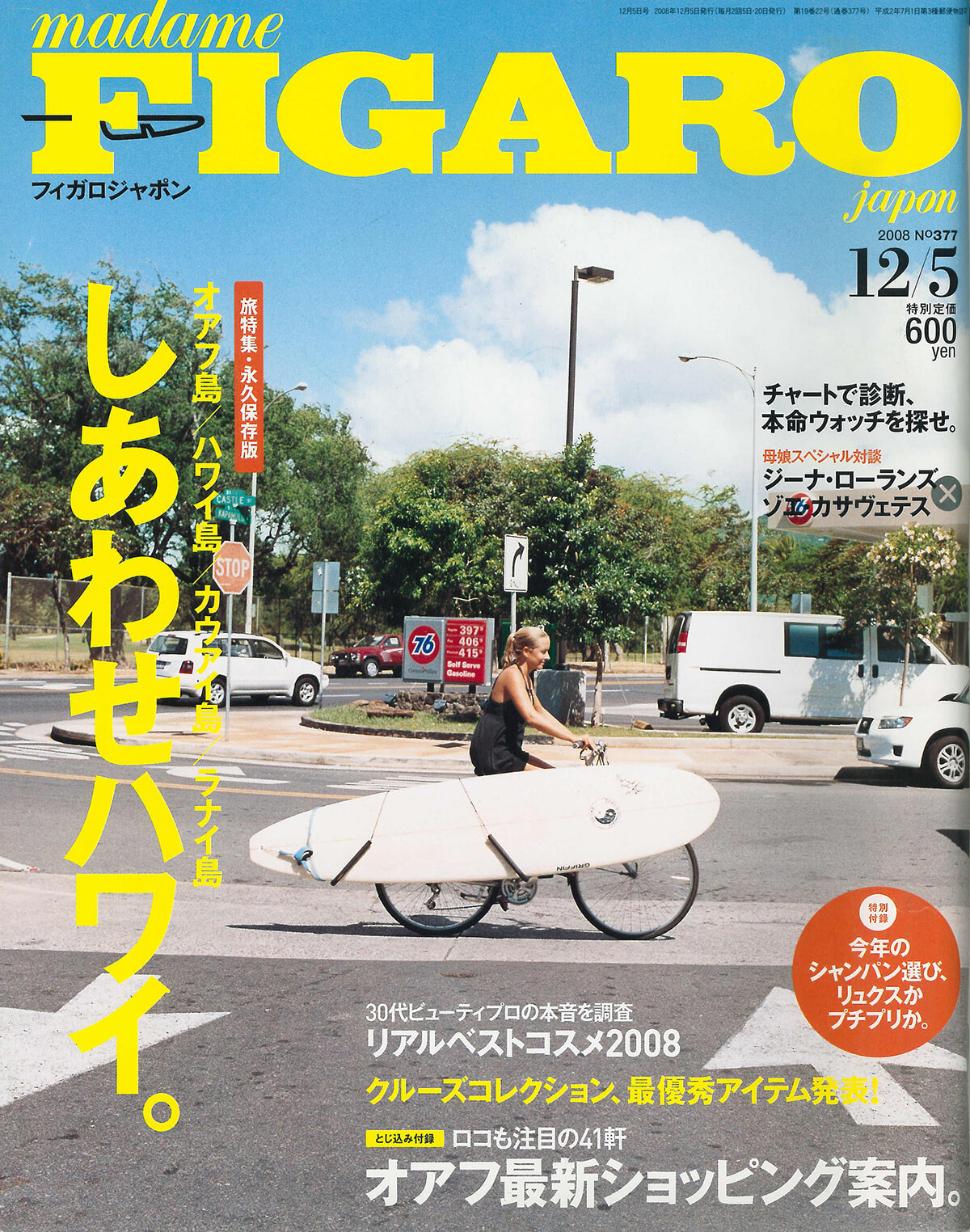 年始の芸能人ハワイ詣でのせいか、フィガロジャポンのハワイ特集はほとんどが年末近辺に行われる。4島網羅、オアフ島のショッピングマップまでついているが、ハワイのカルチャーを感じさせる内容を目指している気配。ベストコスメは30代の美容エキスパート限定で投票。ベストはクロエのフレグランスだった。ベースメイクはアルビオンエクサージュのサマーシフォン。スキンケアはアユーラのビカッサ付きのセラム。みんなの肌には白系パールがきらきらしている時期だった。
