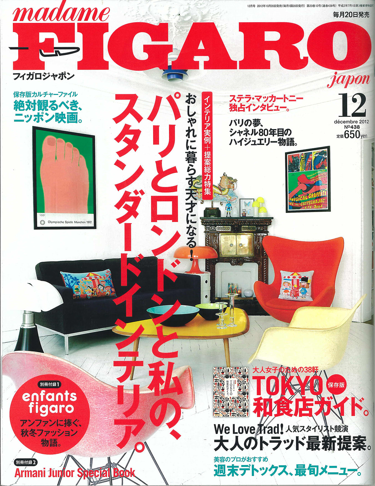 書いていて思う、月刊になって年間12冊なのにインテリア特集多いなあ! 故西村編集長はファッションのエキスパートだったので意外に感じたが、思い出せば確かにインテリア関連に興味津々だったかもしれない。パートナーがデザイナーだったせいかもしれない。素敵インテリアの実例写真を掲載し、その家になろう!な家具や小物を紹介する、ファッション的技法の構成。今号の「大人のトラッド最新提案」は青木良文氏と入社したばかりの多田綾子氏が作ったファッションテーマだが、いまでもそうとう個人的お気に入りの仕立てだ。また、保存倍ガイド大人女子の和食店38は、後にうかがった時に「フィガロさんで紹介されたことがあります」とよく声をかけていただくことが多かった。