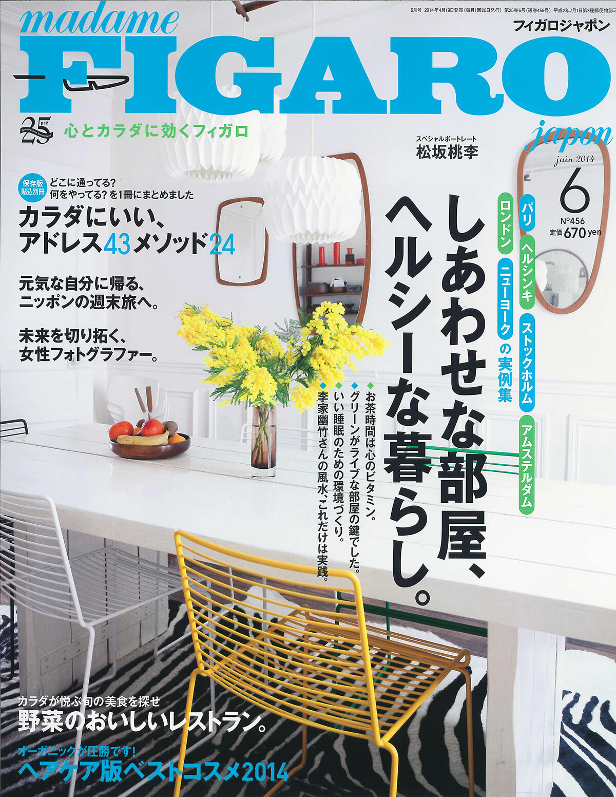 白い空間に置かれたミモザの生け花が表紙の号は、中身も本当にさわやかだった。時代は小悪魔よりもヘルシー志向へ。だからお部屋の実例も、睡眠の工夫、エシカルな素材、緑があふれる、風水にいい、など。ファッションテーマもスポーツ。美容はカラダにいいアドレス紹介。加えてオーガニックヘアケア、という、「ヘルシー志向」読者を目指して一直線。野菜がおいしいレストラン綴じ込みでは、「もりもり食べたい!美人サラダ」という見出しに笑った。
