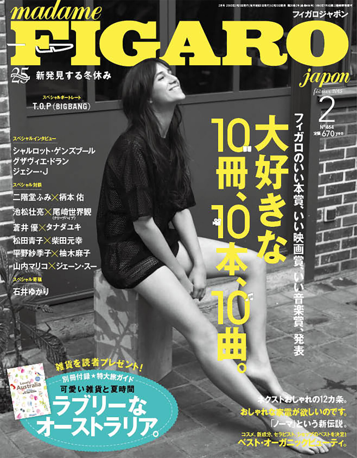 ベスト、という言葉はもう使いたくない!という気持ちからか、「いいXX10」が今回のルールに。表紙は何度目かのシャルロット・ゲンズブールで。表紙写真でわかるように、対談の出演者がすごく豪華! そしてグザヴィエ・ドランのインタビューも掲載されている。デンマークの革命的レストランNOMAがポップアップ上陸するおに合わせてレネ・レゼピへのインタビューも叶った。フィガロオムにBIGBANGのT.O.Pが登場、実は映画ジャーナリスト立田敦子氏は大のK-POP好きなのであった。あ、忘れてはならない、現在フリーランスの笹森真那氏がオーストラリア出張で別冊付録を作成。物価高のオーストラリアは難儀だったろうに……お疲れさま。