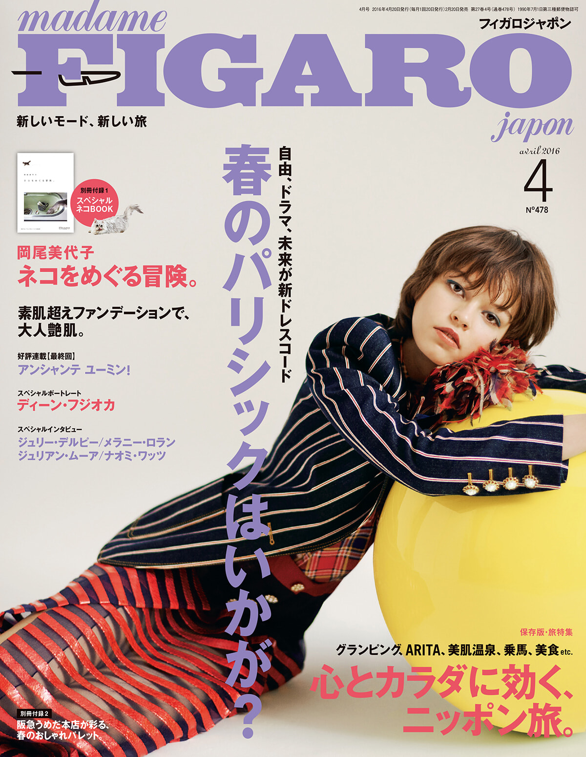 パリシックなファッション特集だけれど、とてもアンニュイなムードに撮影されているストーリーが多かった。これは、もしかすると2015年11月に起きた悲劇、パリ同時多発テロの影響だったのかもしれない。人々は癒しを求めていたし、失ったモノ・コト・ヒトの前で呆然としていた。そんな影響か、心が優しくなれるような特集が多かった時代。岡尾美代子氏による大人気連載「雑貨ヘイヘイヘイ」プレ100回記念別冊付録はネコをめぐる冒険。ネコは人類の暮らしに入り込み、ときめきも癒しもくれる存在。岡尾氏のカメラと文章でつづられた。そして、グランピングという言葉も定着しそうな時代、「心とカラダに効く、ニッポン旅」特集。海外に赴くことに怖さを憶えてしまう時は、自国でのんびりと。