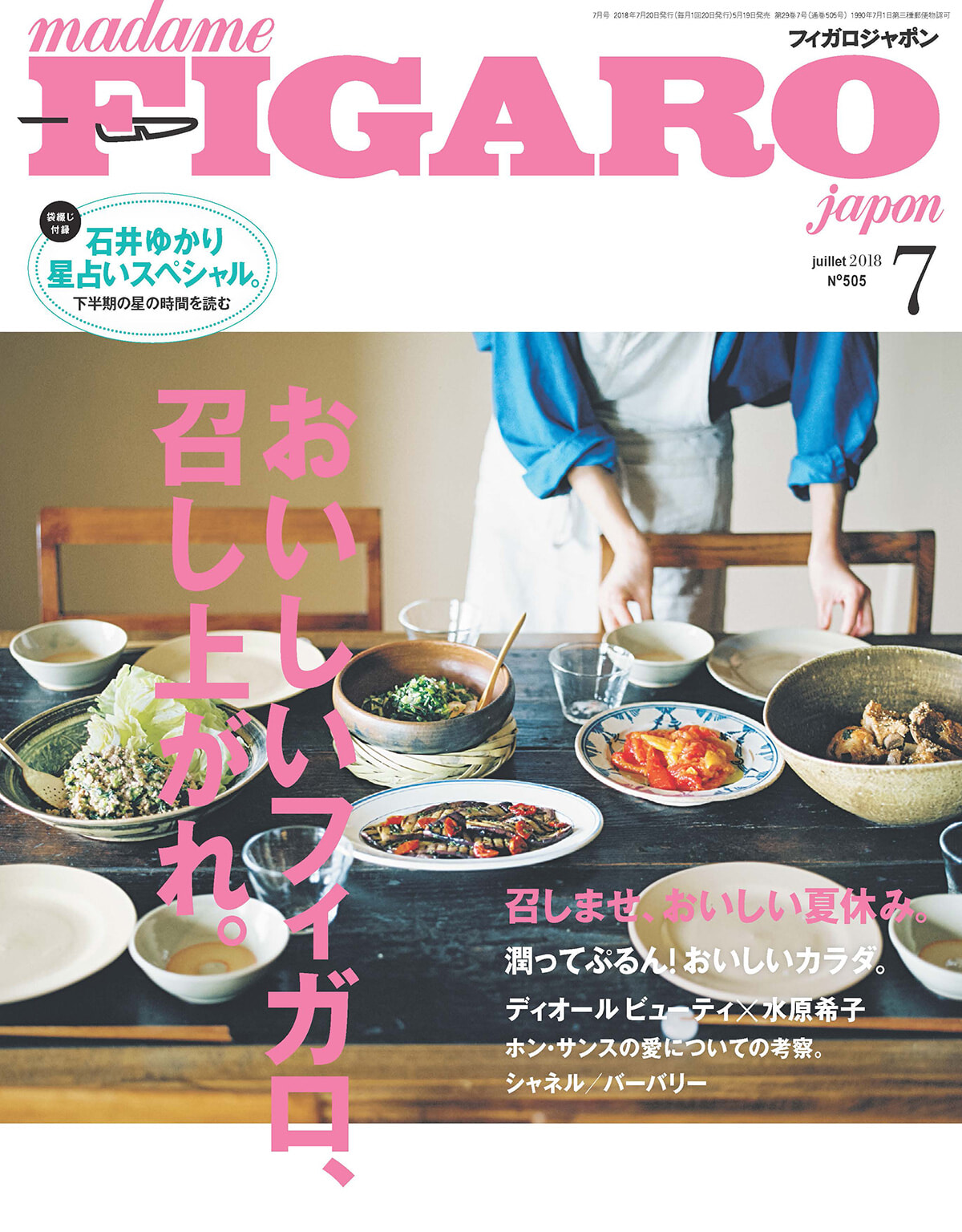 可愛いパリはたくさん見つけられる。だから、今号のパリ特集はあまり苦労がなかった記憶だ。パリ猫のページもラブリー。そして「いい加減美容」というのもよかった。やりすぎはよくない。手をかけすぎずにキレイにいられるためのエトセトラ。人々が求めているのは、そんなライフスタイルだ。新しい地図の御三方と、映画『クソ野郎と美しい世界』のために取材をさせていただいた。これ以来、稲垣吾郎氏、草彅剛氏、香取慎吾氏をフィガロジャポンも取材できる機会が増え、3人の表現力、特に舞台映えする存在感に現在でも感銘を受ける。