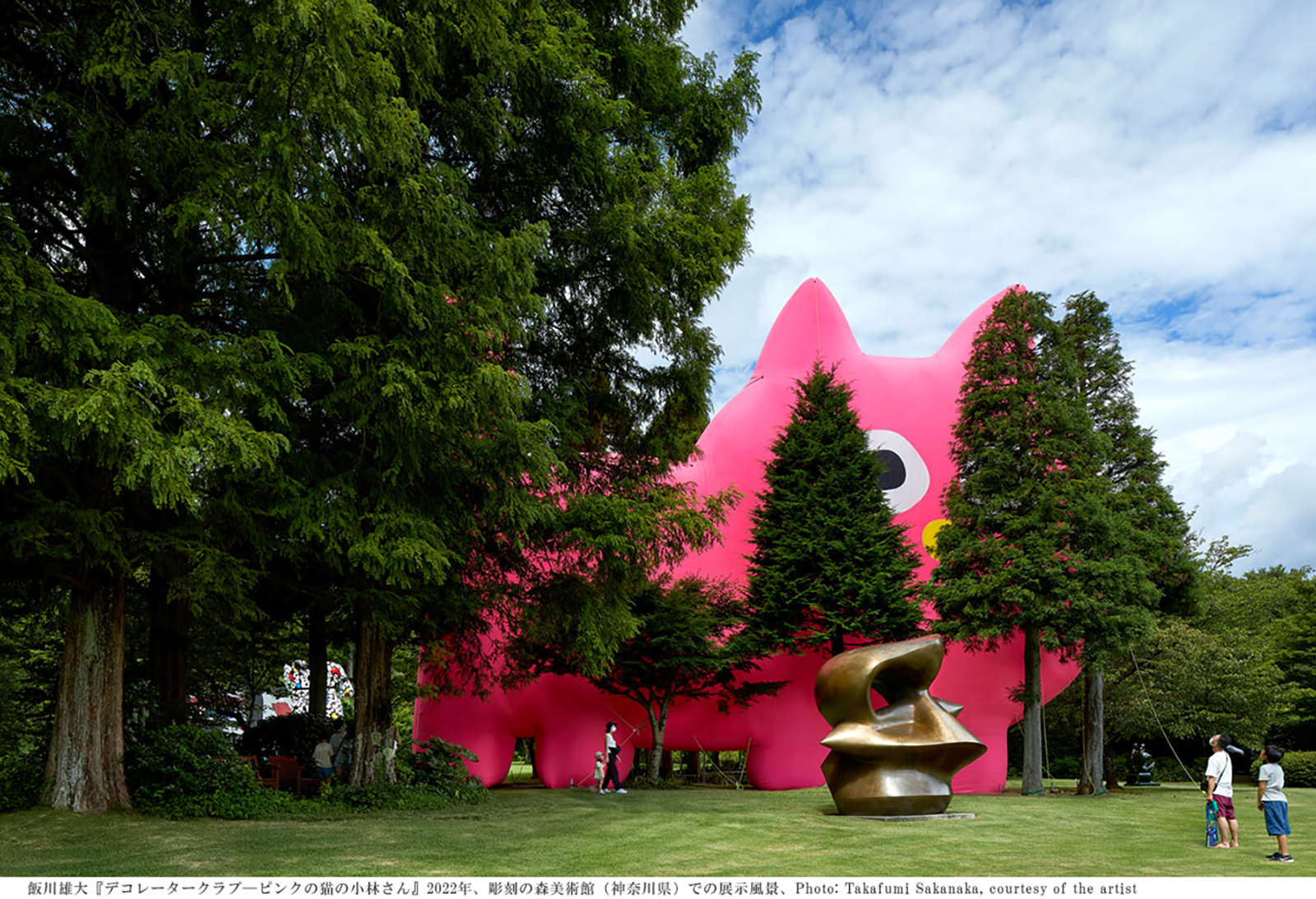 2007年より〈デコレータークラブ〉シリーズを展開してきたアーティスト飯川雄大。街中に突如現れる巨大なピンクの猫や、バッグを鑑賞者自身が移動する、あるいは居合わせた者が知恵を出し合い展示空間を変化させるなど、観客の身体感覚や想像力、場の偶発性によって空間や仕組みが変容する作品を手がけてきた。本展では飯川のこれまでの取り組みを紹介するとともに、鑑賞者を巻き込む仕掛けが思いもよらぬ出来事を見いだすインスタレーションを新たに制作する。
