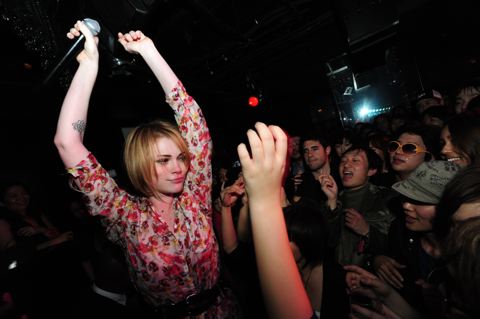 4月初旬に来日し、3日深夜にはル・バロン@青山でライヴ・パフォーマンスを行いました。ステージがないのでフロアでそのまま歌いだし、目前の観客と接しながら歌っていたので、物凄く熱いライヴになっていました。フランスはもちろん、ワールド・ツアーでもいつもこの調子でやっていて、この方がエキサイトして楽しいんだそう。時差ボケも手伝って、物凄いハイテンションでした。