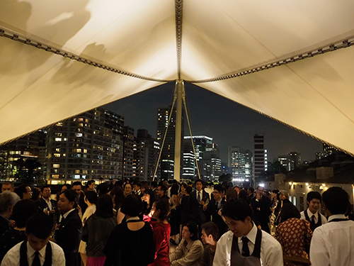 ライトアップされたルーフトップには、女優の長谷川京子や柴咲コウ、モデルの萬波ユカや建築家の田根剛など、各界の著名人が集合。ディナーは熊本地震による被害のサポートとして熊本産の材料が使用され、日本を愛するトーマスならではの気遣いでゲストを温かく迎えた。