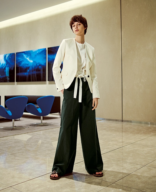 ジャケット¥63,720、Tシャツ¥22,680、パンツ¥48,600、シューズ¥60,480/以上ジョゼフ(オンワード樫山 お客様相談室)