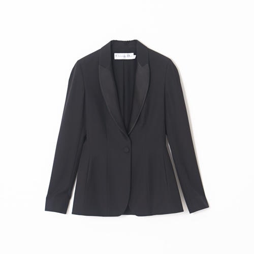 上流階級のマダムが、当時社交場になっていたパリのホテル プラザ アテネのバーで佇む姿を美しくエレガントに見せるジャケットとの由来から名がついた「バー ジャケット」も、8ラインのシルエット。
