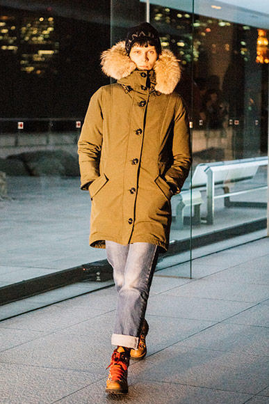 襟元に飾ったたっぷりのファーも、ジャケットの中に閉じ込めた暖かい空気を逃さないためにひと役買っている。「ロスクレア パーカ」 |