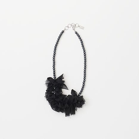 パールにネイビーのチュールリボンがあしらわれたネックレス¥51,840
