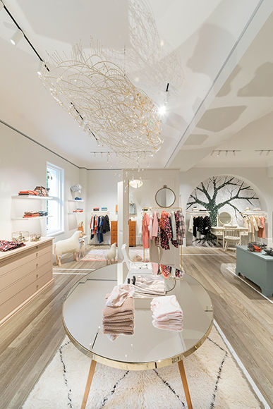 遠くから見ても目を惹くピンク色の壁に、ブランドを象徴するサクランボのモチーフ。足を踏み入れると、愛らしくも洗練された、その世界観を伝えるさまざまな心躍るアイテムや仕掛けにあふれています。