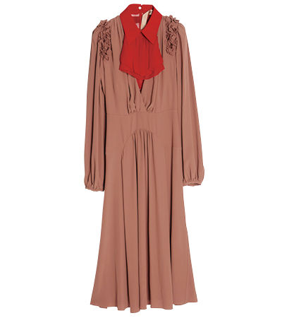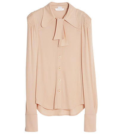 肩まわりにスモッキングを施して。女性らしく柔らかなパワーショルダーが生まれた。ブラウス¥186,840/クロエ(クロエ カスタマーリレーションズ)