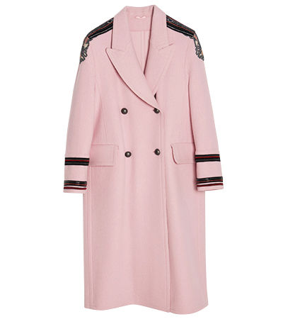 ミリタリーコートの肩章よろしく、繊細なエンブロイダリーを贅沢にあしらって。コート¥451,440/エルマンノ シェルヴィーノ(サン・フレール)