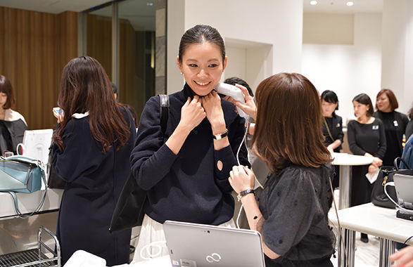 トークショー後は、自分の肌色に似合うリップカラーを提案してくれるIPSAの肌測定やリップフィッティング体験、ショッピングタイムが設けられ、個々にフリーな時間を満喫。