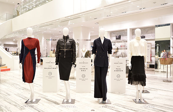 ドレスやセットアップなどのフォーマルスタイルから、カジュアルファッション、小物まで、さまざまなアイテムがポップアップコーナーに並ぶ。