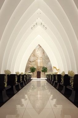 インターコンチネンタルホテル大阪のチャペルは天井約7メートルもの開放感溢れる空間。厳かで安らかな時間が流れる。