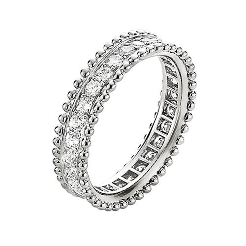 メゾンを象徴する繊細なゴールドビーズの縁取りが特徴的。「エステル エタニティリング」(PT×ダイヤモンド)¥1,053,000 ©︎Van Cleef & Arpels
