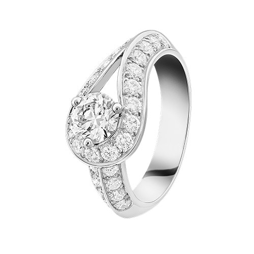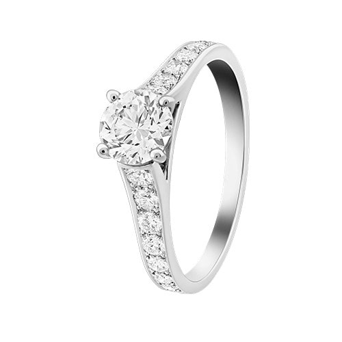 ダイヤモンドの輝きと洗練されたラインが際立つクラシカルなエンゲージリング。「ロマンス ソリティア」リング(PT×ラウンドダイヤモンド0.30ct~)¥761,400~ ©︎Van Cleef & Arpels