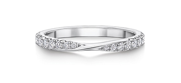 優美な曲線デザインを彩るラウンド・ダイヤモンドは、昨年発売された、同コレクションのエンゲージメントリングのシャンクと同様に、繊細なカットダウン・セッティングにより巧みに配され、プラチナの存在を感じさせないのが特徴。ひとつひとつのダイヤモンドに、理想的なカットが施されたこのウェディングバンドは、同コレクションのエンゲージメントリングとの重ねづけで、さらにお互いの美を引き立ててくれるはず。まさに幸せな花嫁にふさわしい新作コレクションだ。