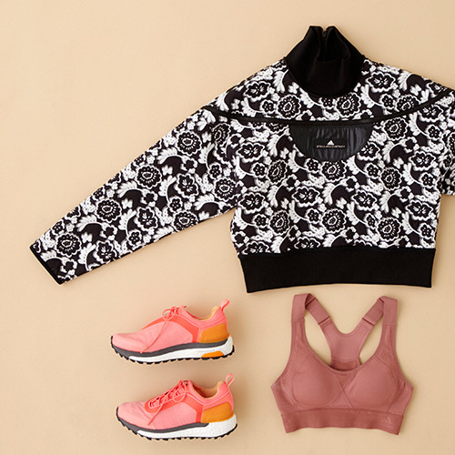 ハイネックトップ¥21,600、ブラトップ¥9,720、スニーカー「RUN ウルトラブースト X」¥24,840/以上アディダス バイ ステラ マッカートニー(アディダス ジャパン)