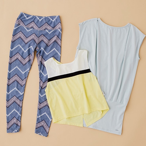 左から、レギンス¥12,960、タンクトップ¥7,560、トップ¥10,800/以上ジュリエ ヨガアンドリラックス