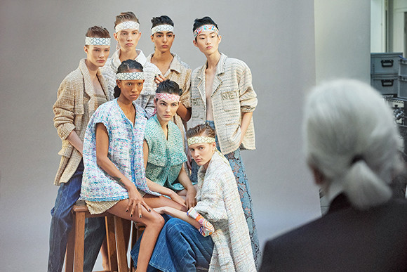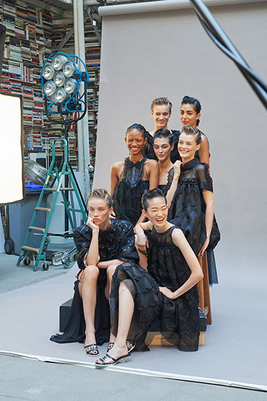 カールの前でポーズをとるモデルたち。 photo : OLIVIER SAILLANT